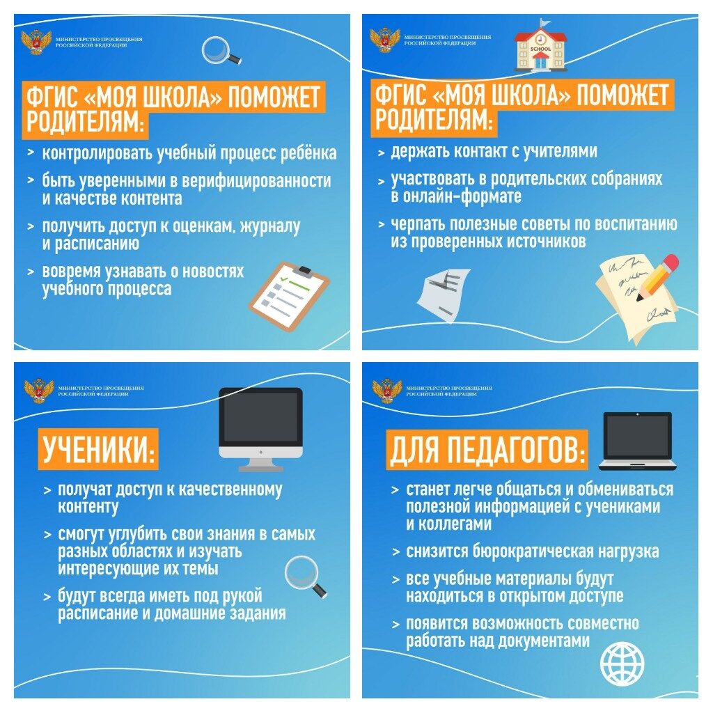 «Моя школа» - это федеральная государственная информационная система, созданная Министерством просвещения России для реализации образовательных программ общего и среднего профессионального образования. ФГИС «Моя школа» выступает в роли единой точки доступа для педагогов, учащихся и родителей к качественному образовательному контенту и цифровым сервисам на всей территории РФ.